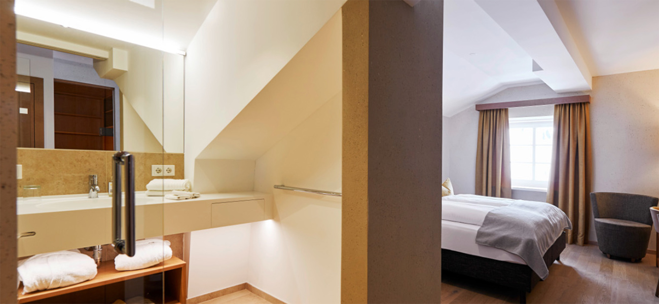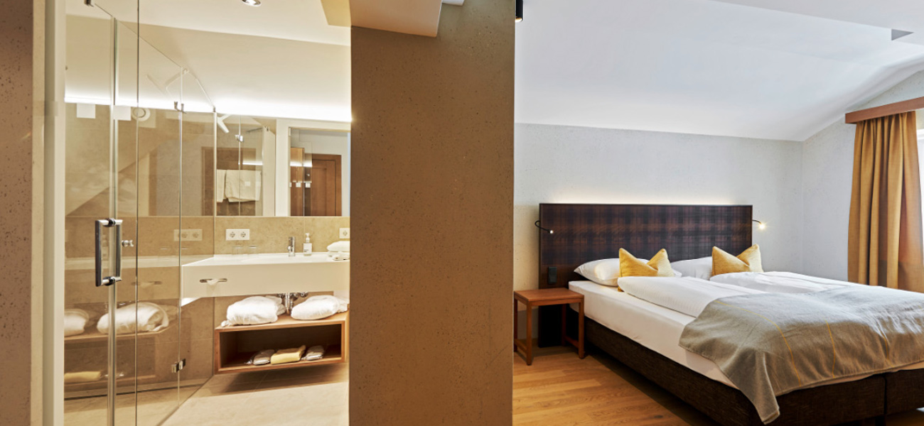 Das Wohlfühlklima in unseren Zimmern wird durch den Tonputz mit Heilerde, die Fußbodenheizung und die Wandtemperierung geschaffen. Sie werden sich sofort entspannt und geborgen fühlen. Der Parkettboden aus Eichenholz verleiht dem Raum eine warme und natürliche Atmosphäre, während die Einrichtung aus heimischem Erlenholz für ein harmonisches Gesamtbild sorgt. Eine kuschelige Decke lädt zum Einkuscheln und Entspannen ein.