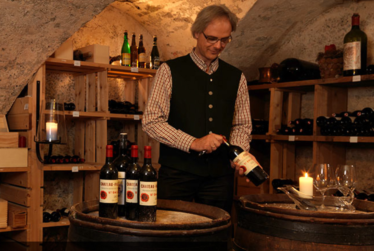 Wie geluk heeft, wordt ook naar de WIJNKELDER geleid, die zich bevindt in het historische keldergewelf uit de 15e eeuw, om er een of meerdere verfijnde wijnen te proeven.